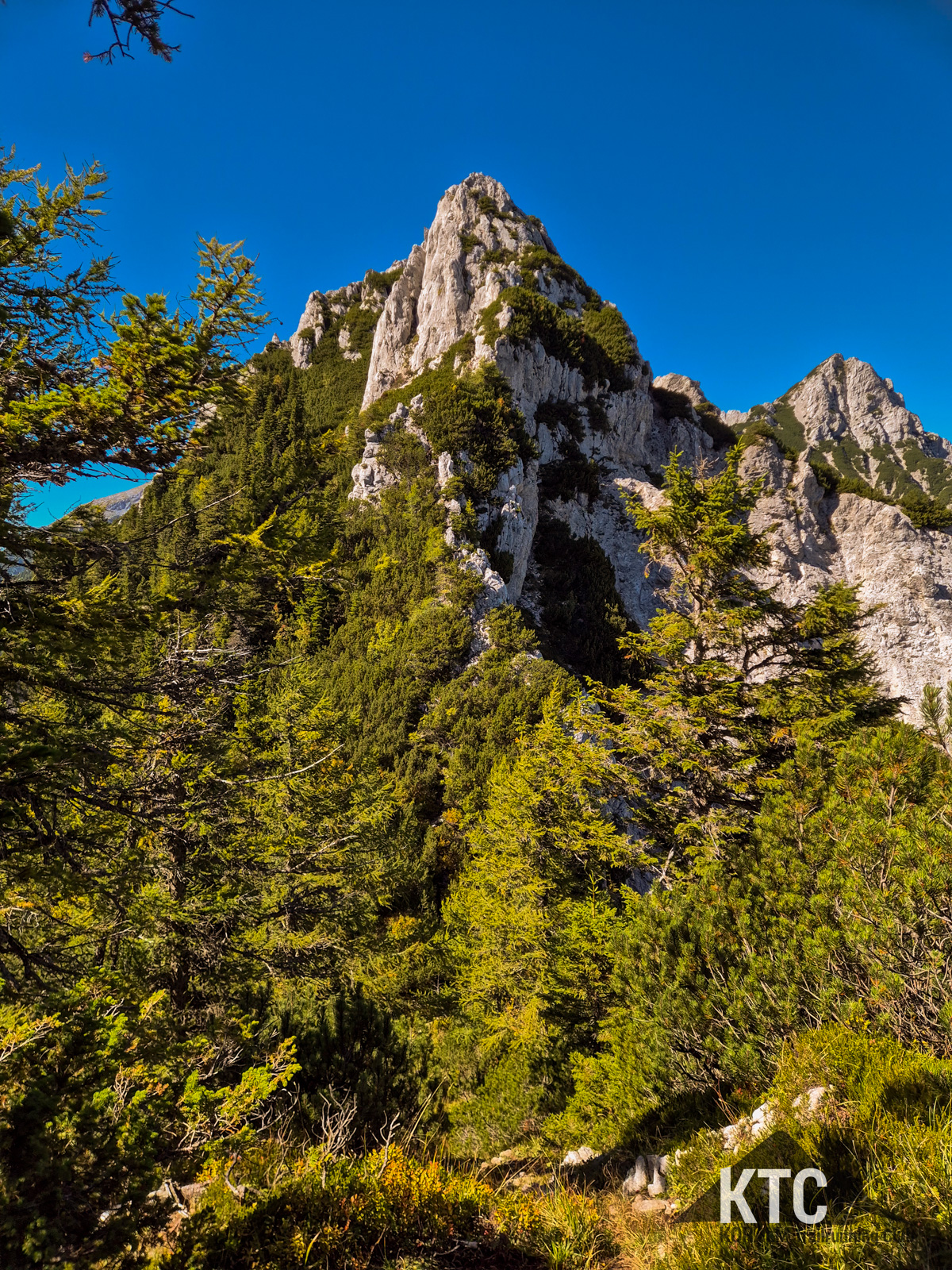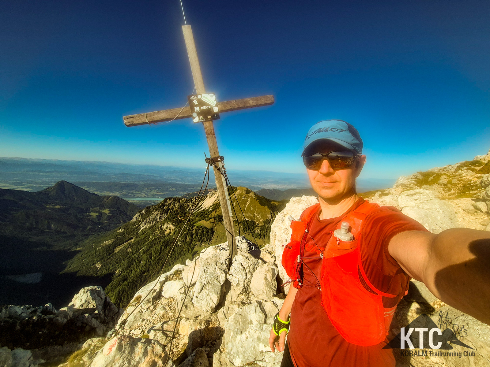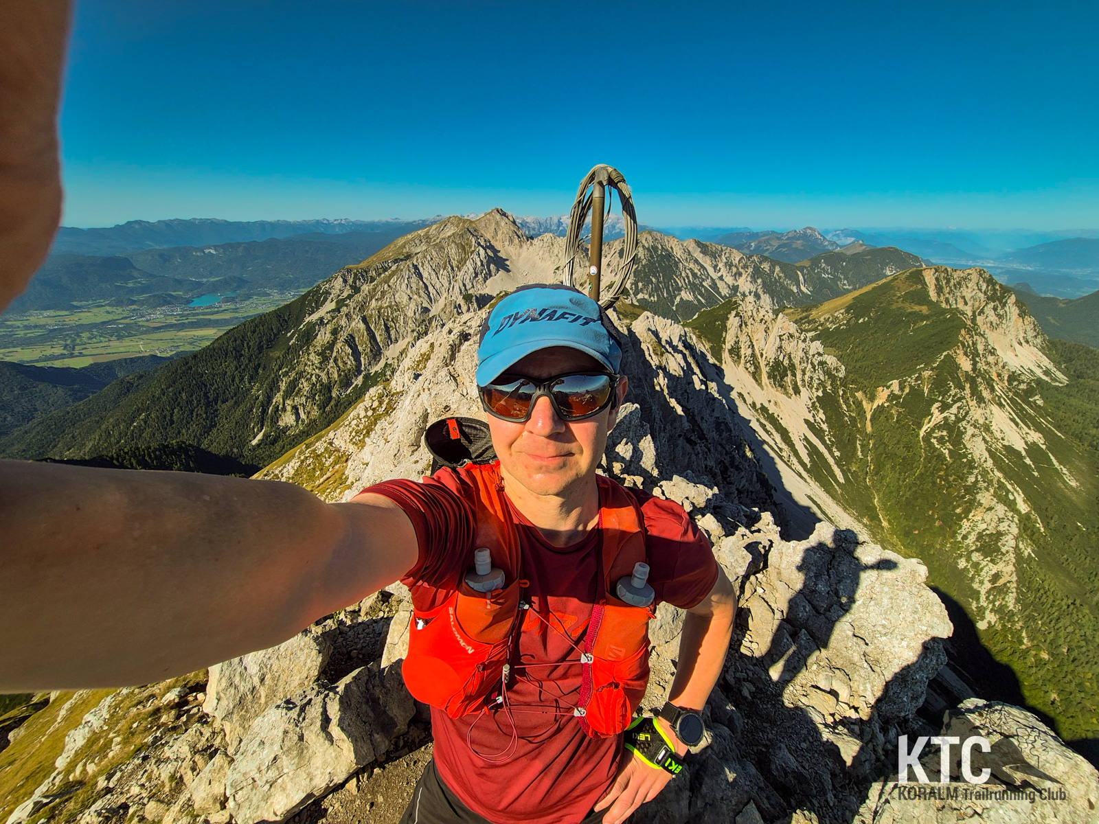 Von Laufen war dort allerdings nicht mehr viel übrig - das war im Bestenfall eine technische Wanderung bis Kletterei und stetiger Wegsuche. Der elektronische Helfer am Handgelenk versicherte aber immer wieder auf dem Weg zu sein. Außerdem waren doch immer wieder Latschen ausgeschnitten und somit soetwas wie ein Weg erkennbar - für einige Meter. Mehrere Gipfelkreuze konnte ich auf dem wirklich schwierigen, ausgesetzten Weg erklimmen und immer wieder die atemberaubende Fernsicht in alle Richtungen geniesen. Speikkogel, Großglockner, Triglav.. alles war dabei und noch viel mehr, was ich aber ob meiner bescheidenen Kenntnisse nicht bennen konnte.