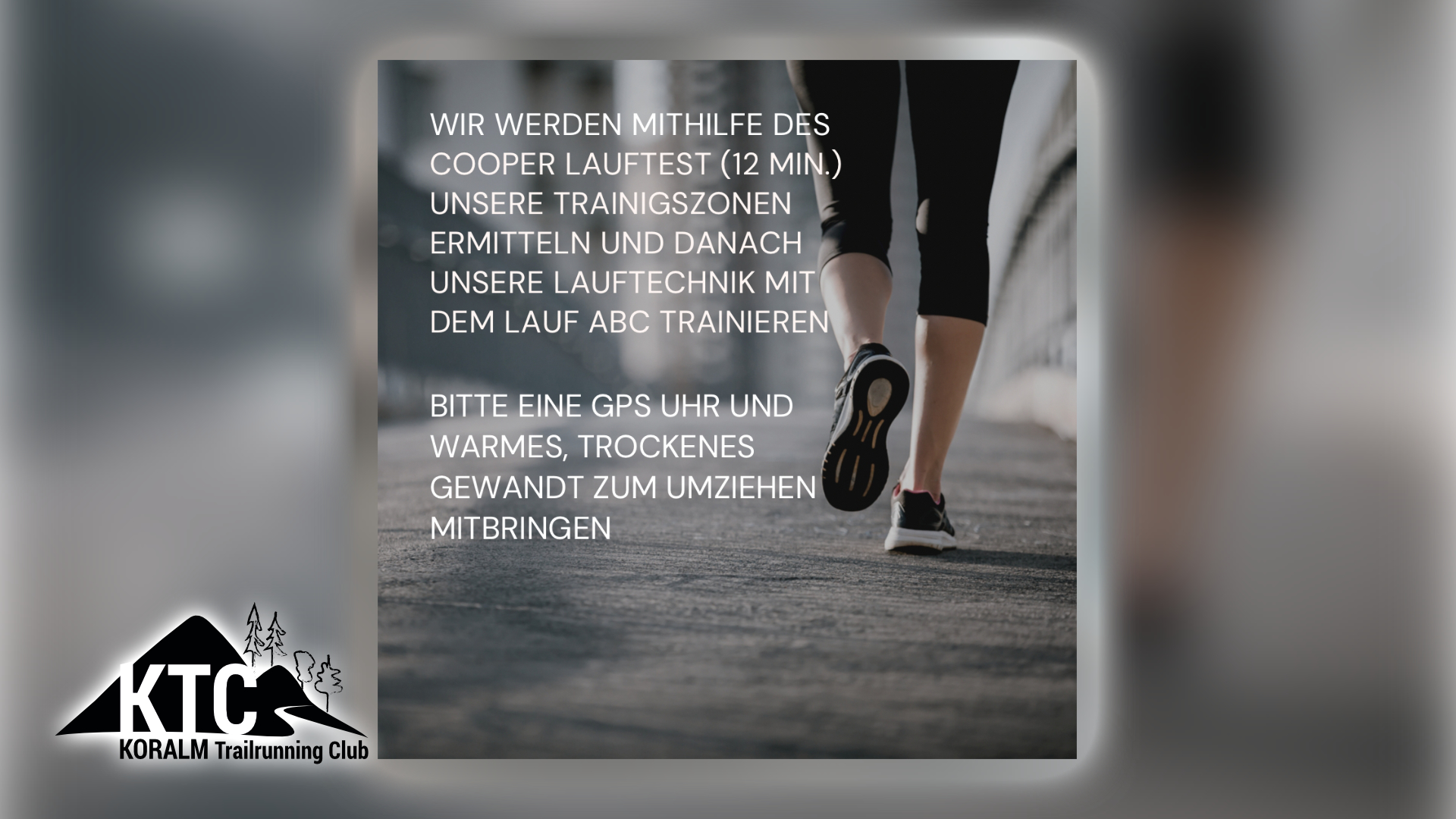 Mit Hilfe des Cooper Lauftest (Dauer 12 Minuten) werden wir unsere Trainingszonen ermitteln. Danach trainieren wir unsere Lauftechnik mit dem Lauf ABC.
