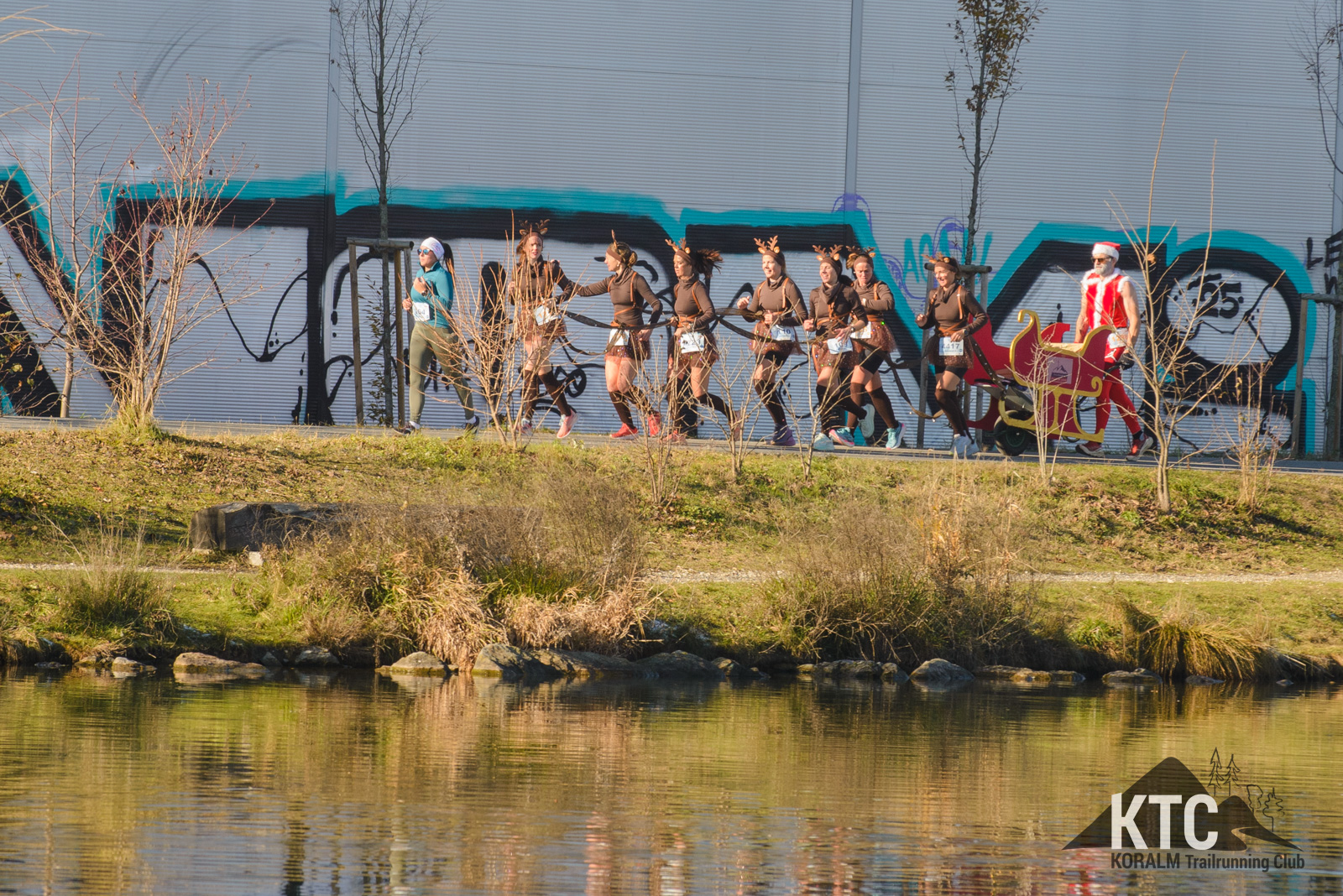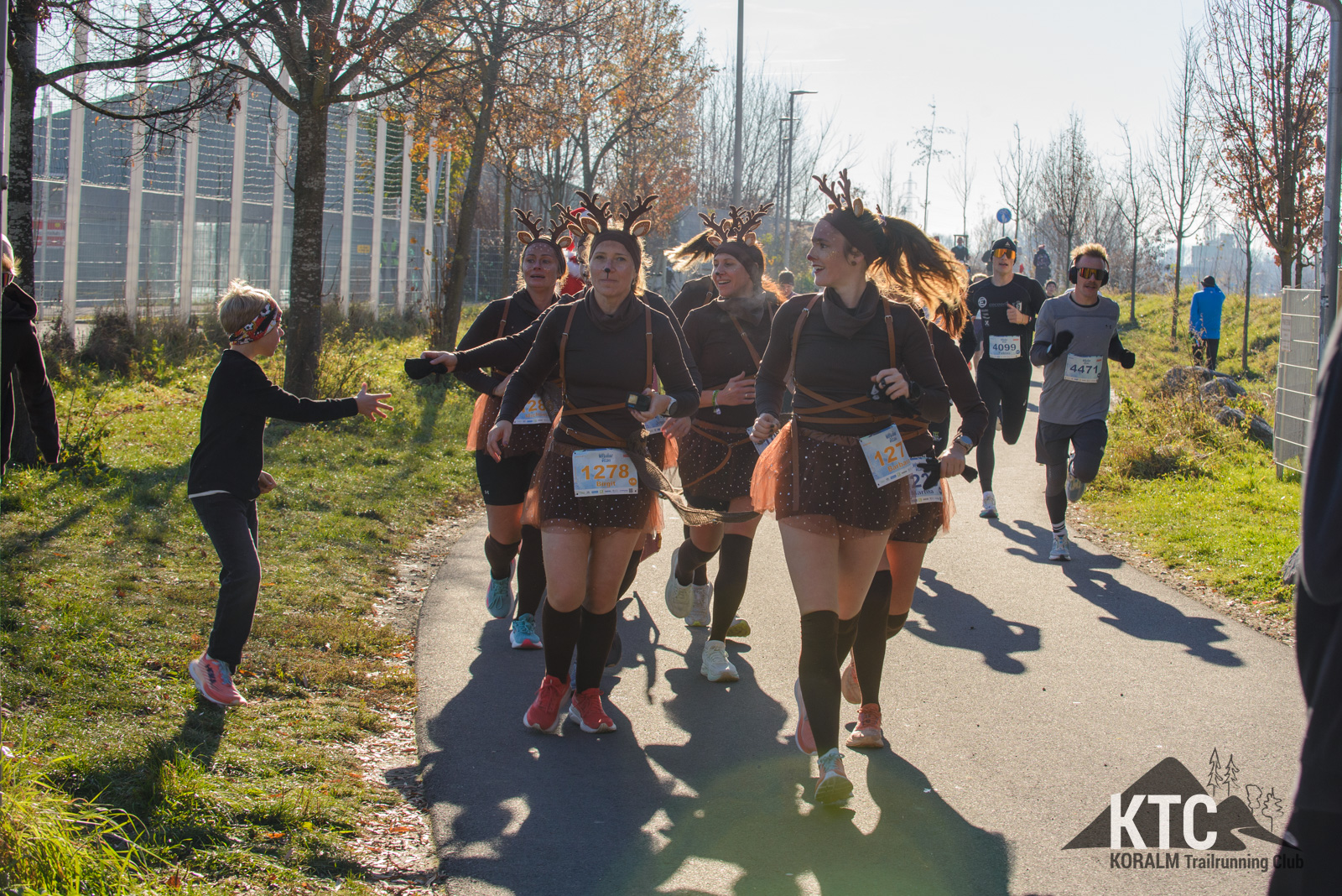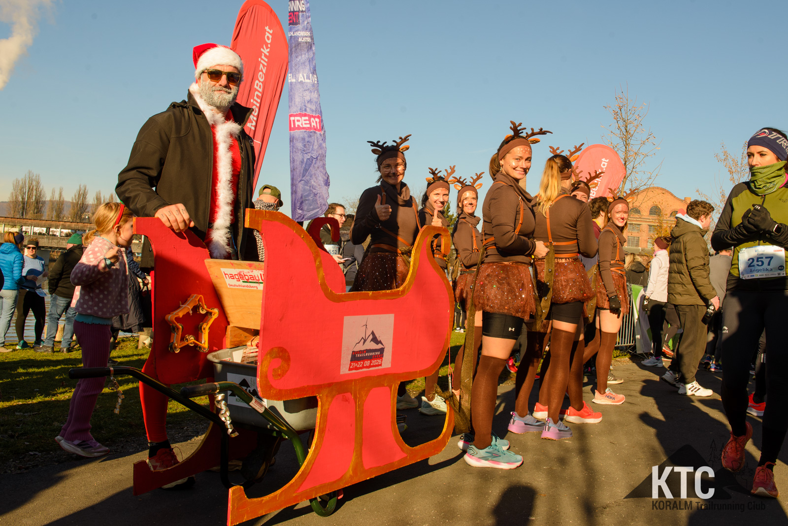 Barbara Frieß, Martina Brunner, Birgit Natter, Nadine Tomberger, Jennifer Lampl, Eleonore Fabian und Michaela Koch traten als fröhliche Rentiere an – komplett mit Hörnern, roter Nase und jeder Menge guter Laune. Gemeinsam zogen sie einen Schlitten, hinter dem kein Geringerer als Jürgen Brunner lief, der als Santa Claus das Schlusslicht der Gruppe bildete. Das weihnachtliche Ensemble verbreitete nicht nur Stimmung, sondern auch eine klare Botschaft: Werbung für den KTRE am 21.+22.08.2025 durfte auf diesem Lauf nicht fehlen.